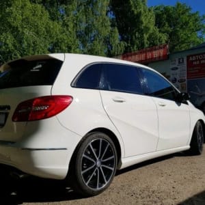 • 01R Легкосплавные колесные диски 18" с 5-ю сдвоенными спицами, черные, полированные, с шинами 225/40R18 на дисках 7, 5Jх18ЕТ52 (лучшее из того, что идёт штатно, на них В-класс обычно изображён на брошюрах и в рекламе. Поворачивает на них, как по рельсам)