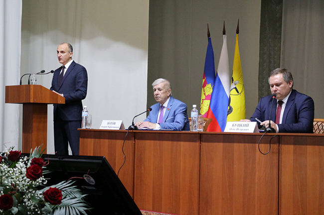 В зале клуба имени Меньшикова собрались депутаты районного и поселенческих Советов, главы поселений, представители силовых структур, руководители предприятий и учреждений, ТОСовцы, общественники, жители. В работе сессии под председательством Андрея Зотова принял участие руководитель департамента по обеспечению деятельности мировых судей Краснодарского края Олег Буцкий.