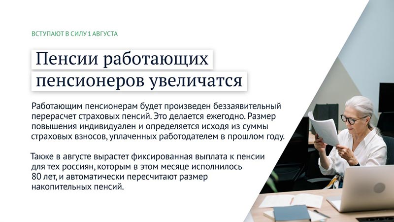 С 1 августа произойдет традиционный перерасчет пенсий работающих пенсионеров, увеличиваются ставки утилизационного сбора на ввозимые в Россию иномарки,