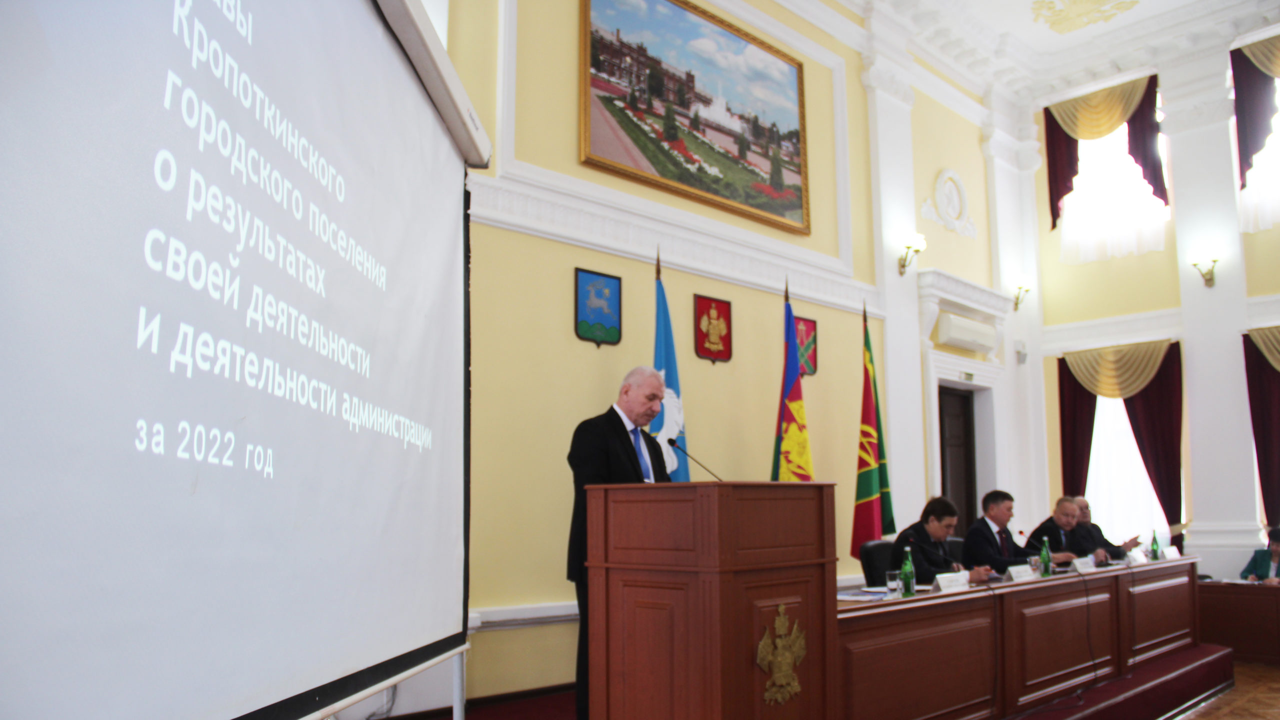На ежегодной отчетной сессии градоначальник рассказал об экономической и социальной составляющих прошедшего года. Западные санкции в начале весны существенно осложнили работу предприятий Кропоткина, однако позже бизнес и промышленность сумели оперативно сориентироваться и найти пути не только для восстановления темпов, но и роста. В городе начал работу первый резидент промышленного парка «Достояние», новую жизнь получил маслоэкстракционный завод.