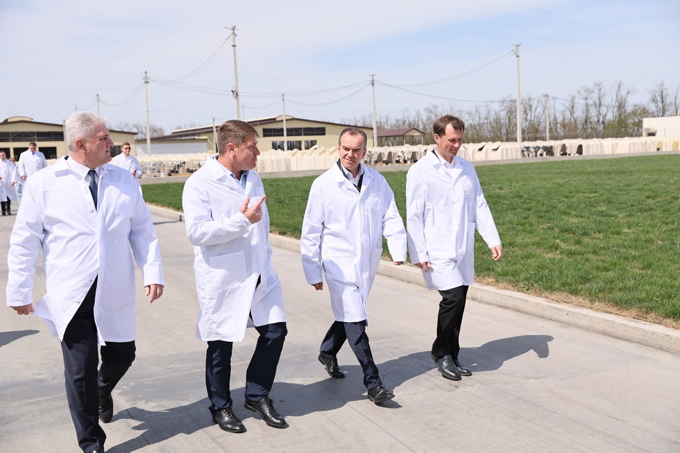 Начался визит главы нашего региона с сельхозпредприятия. Молочно-товарная ферма агрохолдинга в поселке Кубанская степь оборудована по последнему слову промышленных технологий и является лидером по продуктивности коров в крае.