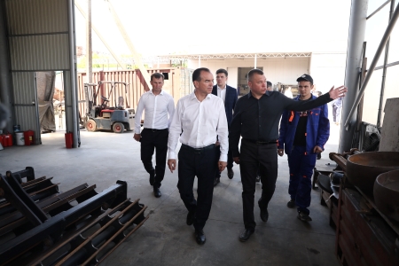 Во время рабочей поездки в Новопокровский район глава Краснодарского края Вениамин Кондратьев посетил два предприятия. Сперва губернатор региона осмотрел предприятие по производству сельскохозяйственного оборудования, а именно более 80-ти видов техники для обработки почвы, в том числе дисковые бороны, лущильники, культиваторы. Компания находится в станице Новопокровской.