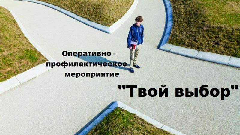 В целях нейтрализации попыток вовлечения несовершеннолетних в деструктивную, в том числе экстремистскую и террористическую деятельность, в незаконные массовые акции, противодействия проникновению в подростковую среду информации, пропагандирующей суицидальное поведение и насилие в образовательных организациях, в период с 13 по 20 апреля 2023 года на территории Курганинского района проводится федеральное оперативно-профилактическое мероприятие под условным наименованием «Твой выбор».