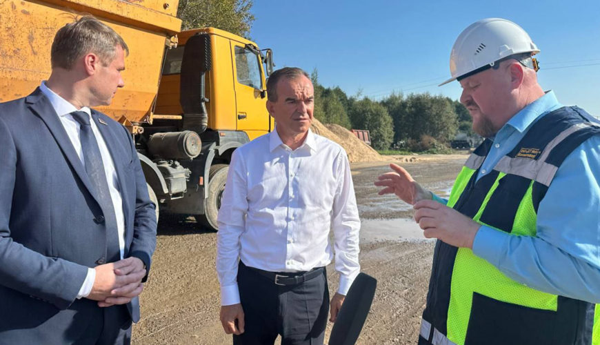 Во время рабочей поездки в Республику губернатор Краснодарского края посмотрел участок трассы М3 «Минск-Витебск». Главе региона рассказали о технологии строительства дорог, показали передвижной завод по производству цементобетона.