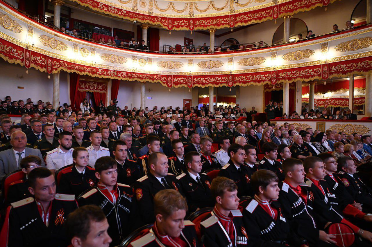 На краевом торжественном мероприятии в Краснодаре собрались военнослужащие и герои специальной военной операции (СВО), ветераны, представители молодежных патриотических объединений, общественных организаций и волонтеры. Мероприятие проводилось в здании Краснодарской филармонии имени Г.Ф. Пономаренко.