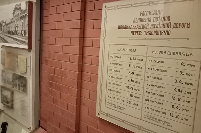 Музейный экспонат о графике движения поездов через станцию Тихорецкая.