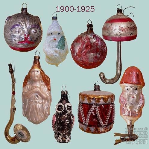 Когда-то почти все ёлочные украшения были съедобными: орехи, яблоки, сладости. Но 1848 году лето в Германии выдалось неурожайным, и находчивые стеклодувы из городка Лауша решили сделать вместо яблок стеклянные шары. Первые получились очень тяжелыми: толщина стенок могла доходить до 7 мм. Со временем (с появлением газовых горелок) мастера научились выдувать и тонкостенные шарики, и гроздья винограда, птиц, рыбок.