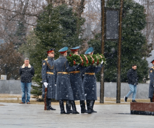 В знак глубокого уважения и сохранения традиций военнослужащие прошли торжественным маршем по Площади Памяти Героев.