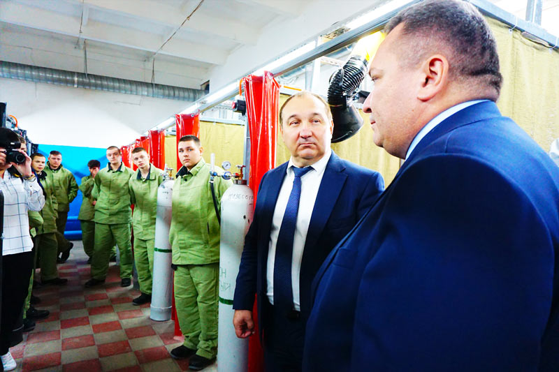 Следующей точкой мероприятия была экскурсия по обновленной мастерской, где проходила учебная практика. Ребята готовились к демонстрационному экзамену — профессиональному ЕГЭ. Студенты выйдут из стен колледжа квалифицированными электрогазосварщиками. На вопрос главы И. Гузева, будут ли ребята после учебы работать по профессии, все, как один, подняли руки. Рассказывали гостям о своих планах в профессии и делились мыслями о будущем такого ремесла, как сварка. Будущие профессионалы не думают сомневаться в своем выборе.