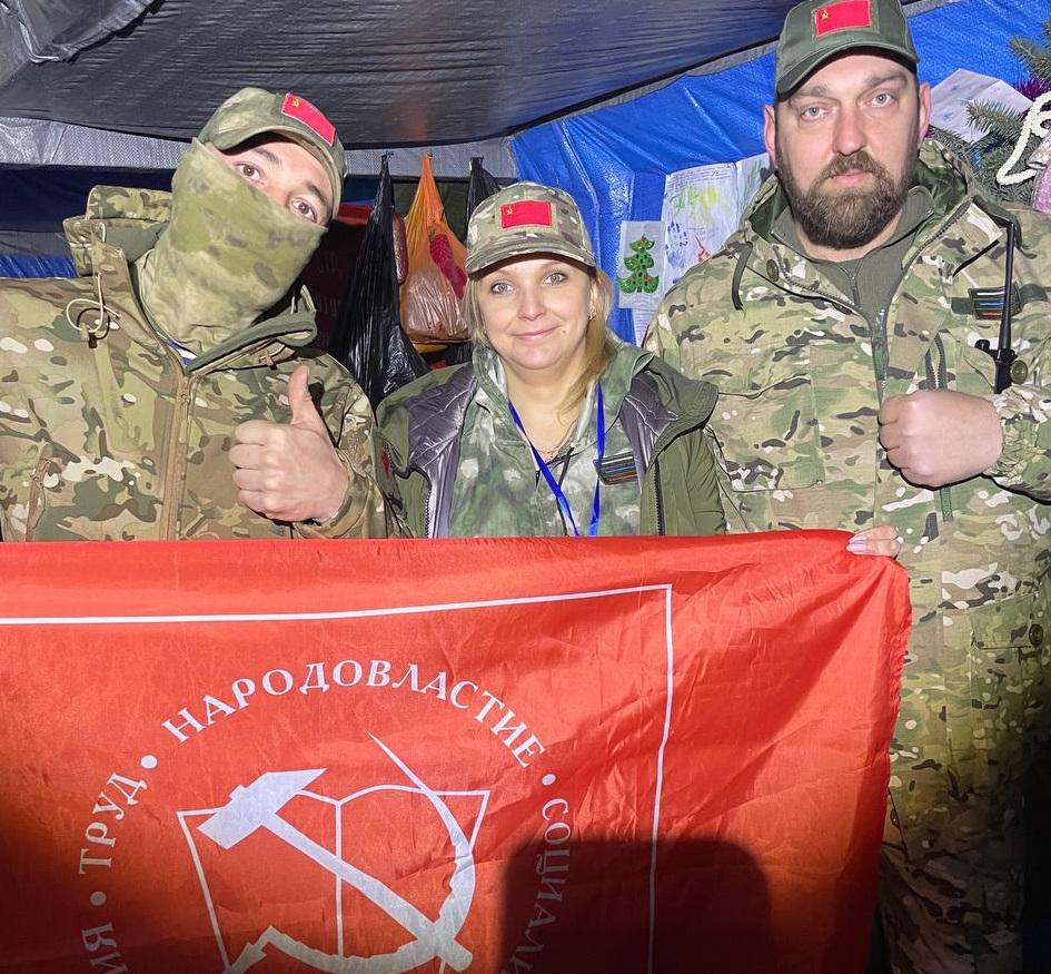 Кроме того, активисты привезли флаги СССР и КПРФ, вручили военнослужащим специально изготовленные шевроны с изображением флага Советского Союза. Шевроны сразу же были прикреплены на форму со словами: «Это флаг всех времён и народов, он ведёт нас к Победе», а флаги водрузили на военную технику.