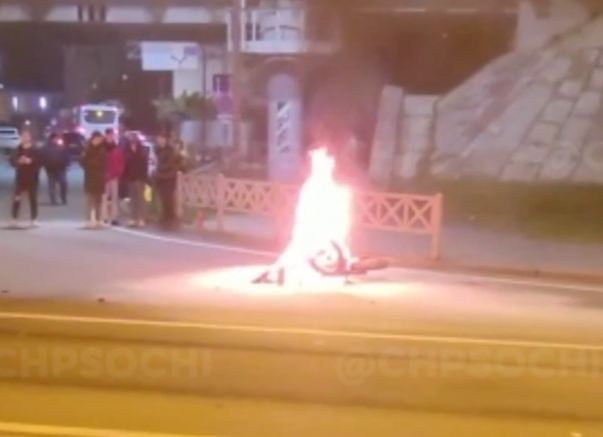 В Сочи в ДТП с легковушкой травмы получил курьер, скутер сгорел