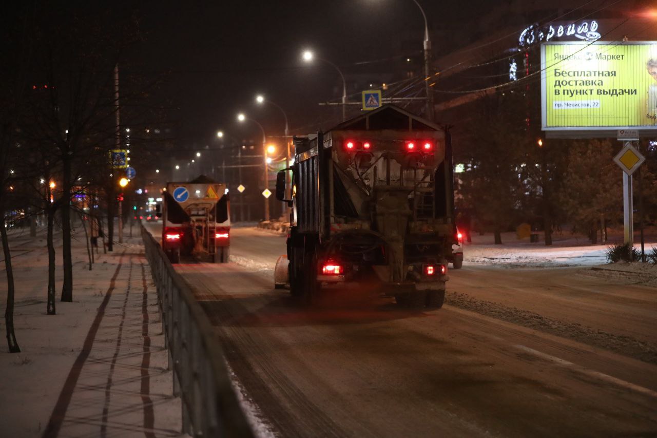 В настоящее время на улицах работает 39 комбинированных машин, они обрабатывают реагентами магистральные улицы и дороги первой очереди.
