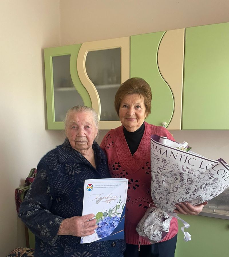 Сегодня свой 90-летний юбилей отмечает жительница города Крымска, Тамара Федоровна Плошник. От имени главы города Крымска её пришли поздравить представители администрации и депутат Совета города Крымска Любовь Ивановна Черникова.