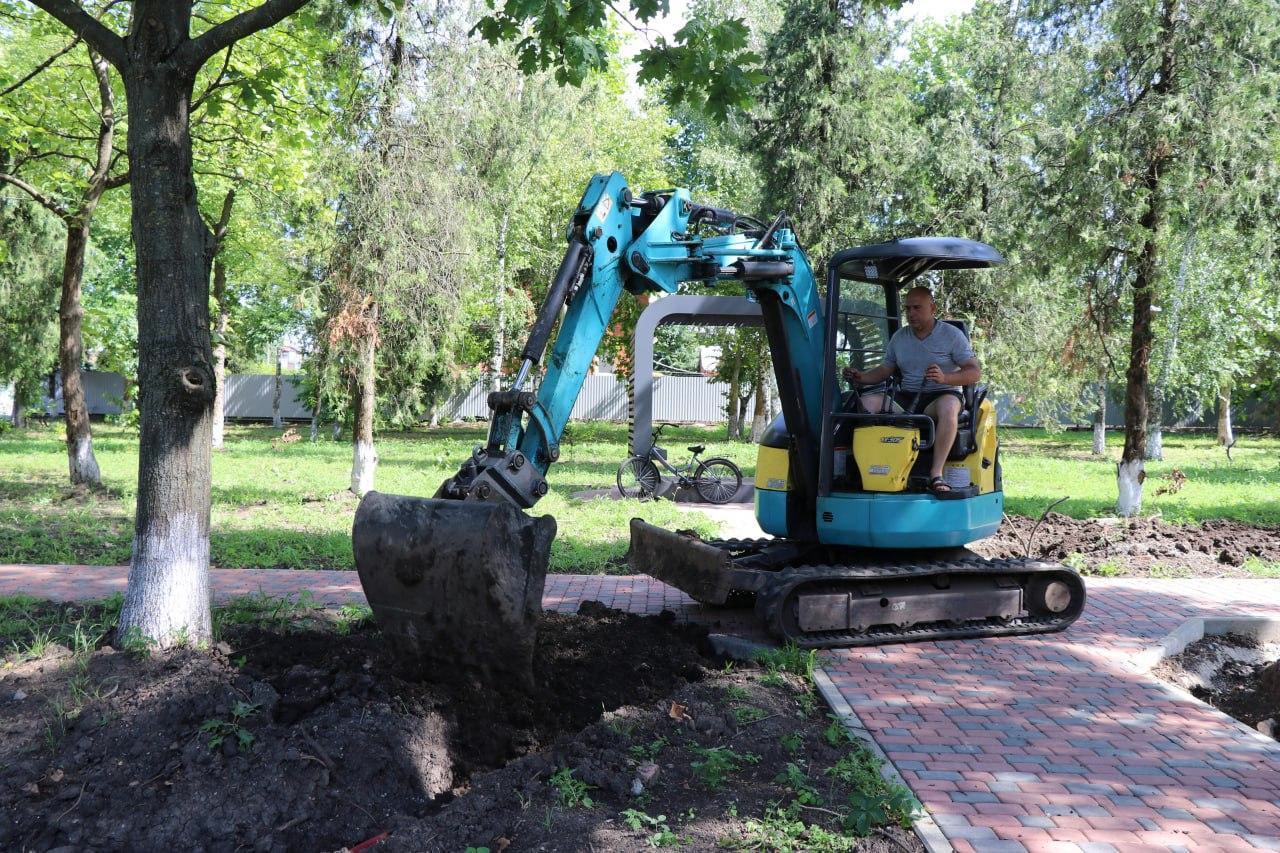 Также в станице продолжаются работы по благоустройству “Сквера Победы”. Приступили к монтажу уличного освещения.