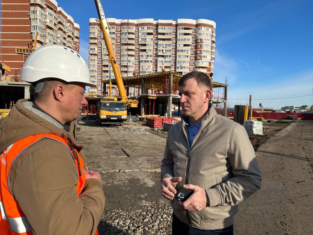 Во время рабочего объезда города глава Краснодара проверил ход строительства социальных объектов на территории ЖК «Самолёт».