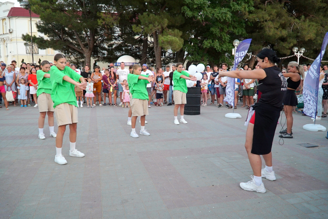 Коллектив фитнес-центра города совместно с танцевальной студией и ди-джеем п-настоящему зажгли в этот вечер. Зажигательная разминка, соревнования в поднятии тяжестей и возможность поиграть мускулами – все это и даже больше было на Центральной площади Геленджика.