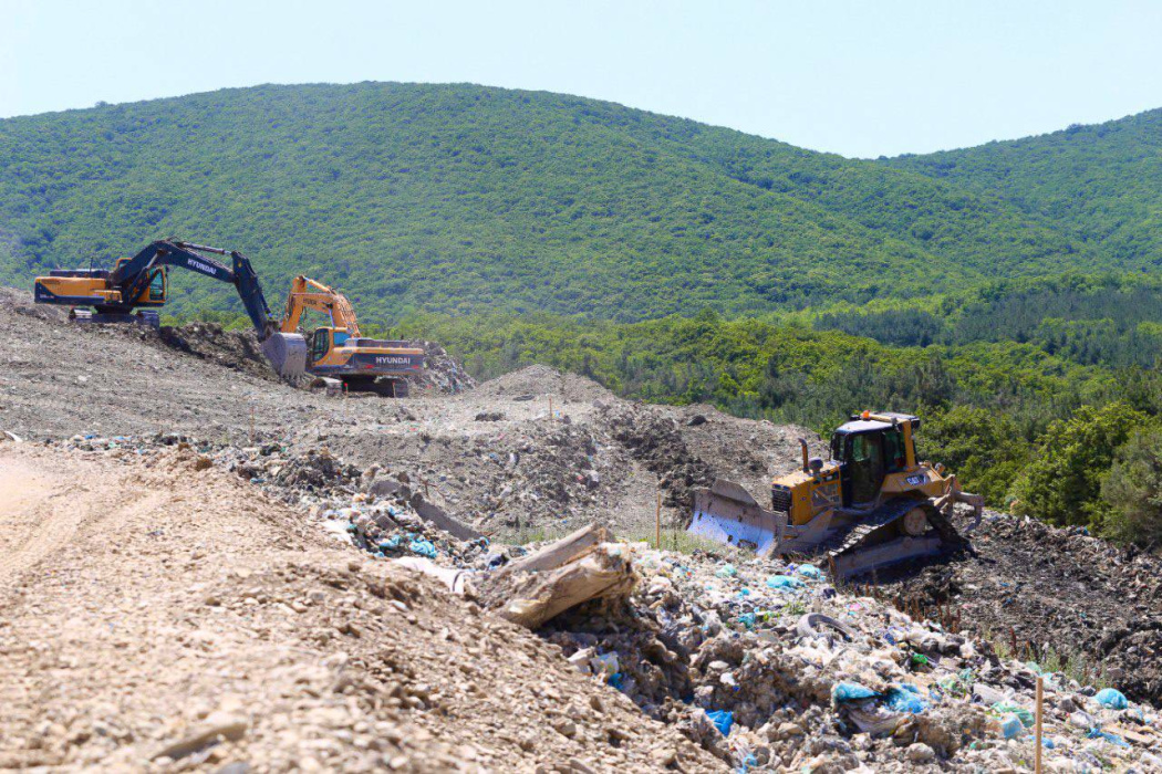 По полигону: завершен технический проект и укладка первого слоя геотекстиля. «Тело» полигона сформировано на 95%. Сейчас на объекте мобилизовано 35 единиц техники и 50 человек.