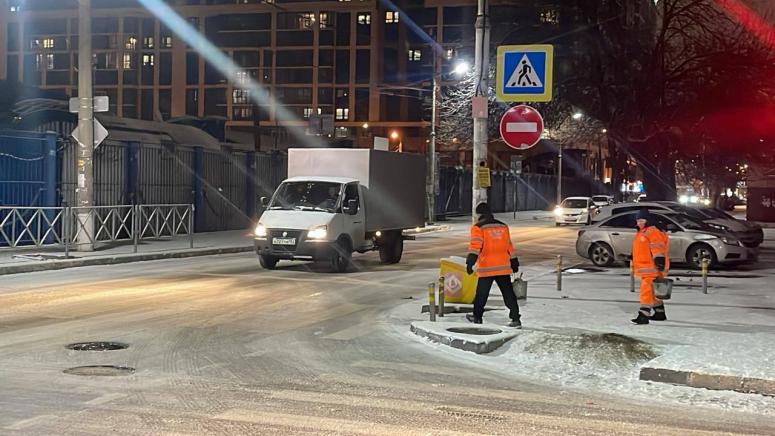 На улицах города специалисты дорожных и коммунальных служб использовали более тысячи тонн песко-соляной смеси
