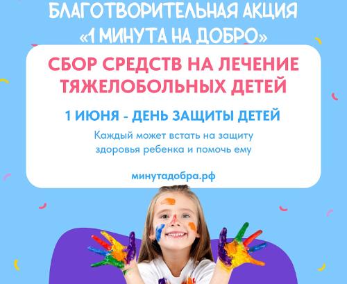Присоединиться к акции «1 Минута на добро» может любой желающий. Узнать истории детей и сделать пожертвования можно на сайте минутадобра.рф .