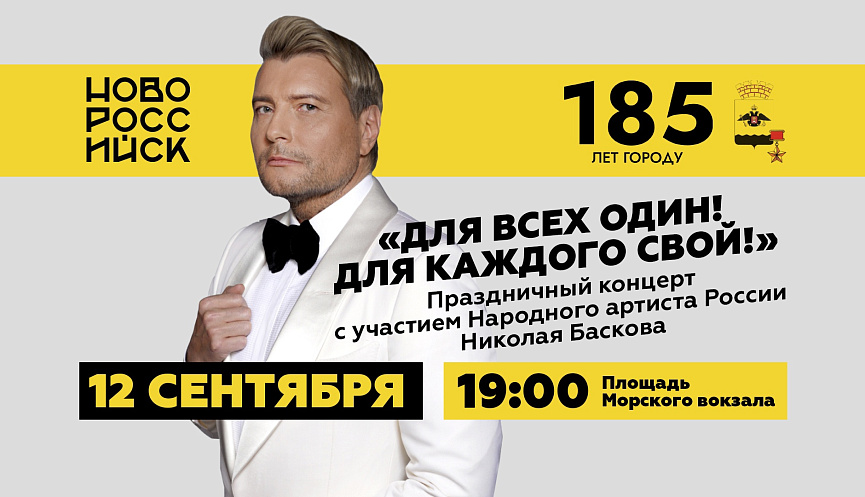 Приходите, празднуйте 185-летний День основания города-героя Новороссийска и наслаждайтесь лучшими хитами народного артиста России Николая Баскова!