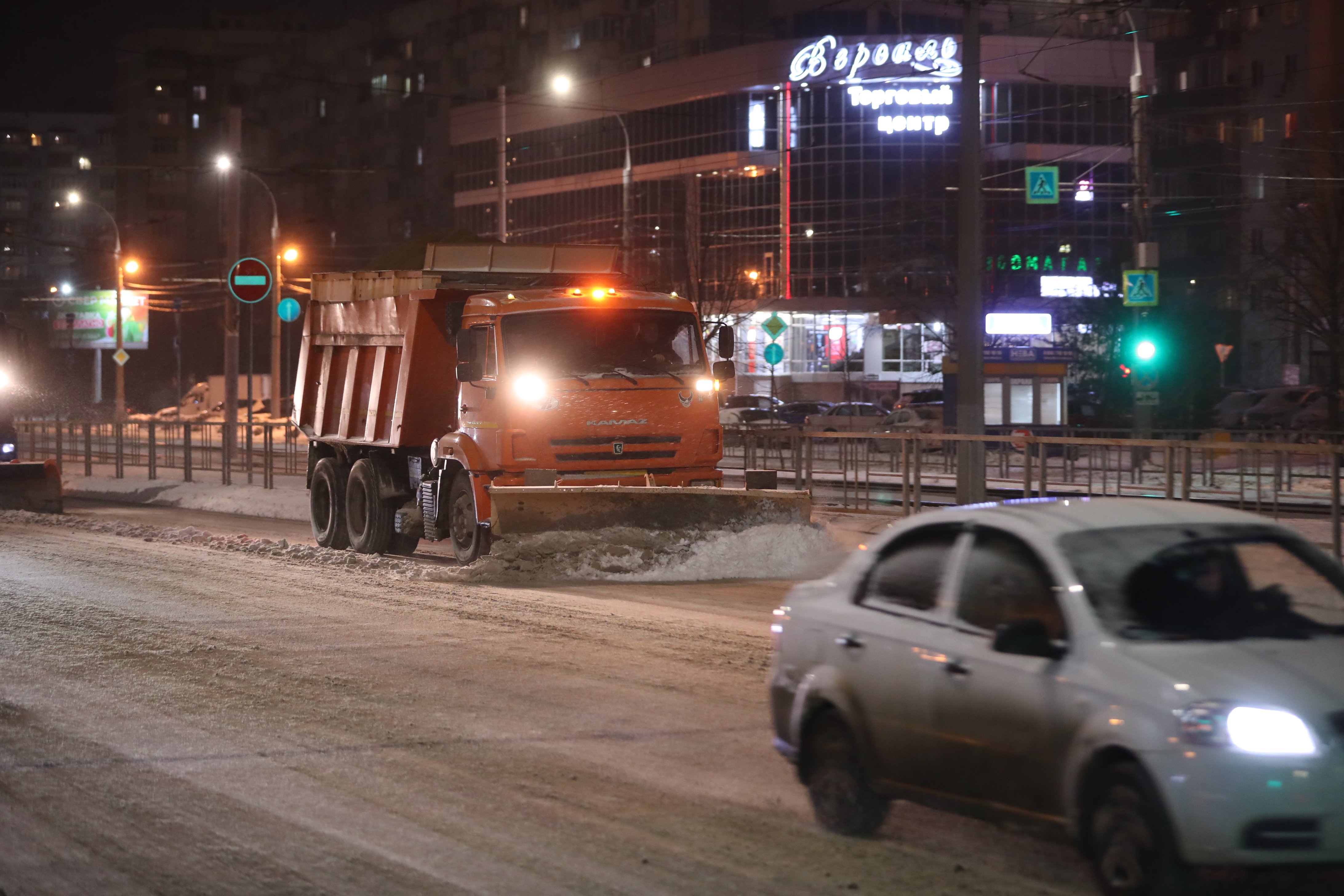 После вечернего автомобильного трафика уборкой и обработкой дорог займутся более 40 комбинированных машин. В течение дня они работали на магистралях, начали расчистку и второстепенных дорог. Эта работа продолжится и ночью.