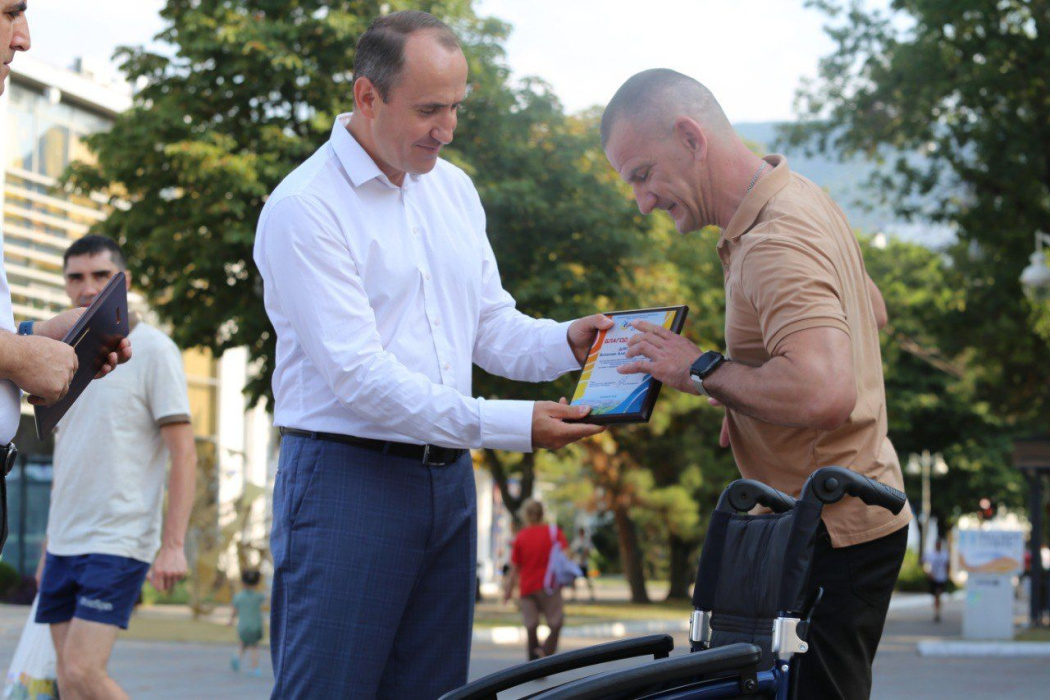 Узнав об этой истории, к решению вопроса подключился глава Геленджика Алексей Богодистов. Накануне Дня физкультурника он передал Виталию Дикову необходимую конструкцию, а также благодарность за то, что молодой человек развивает себя и популяризует Геленджика на краевом и федеральном уровнях. Благодарности был удостоен и тренер геленджичанина Григорий Какунин.