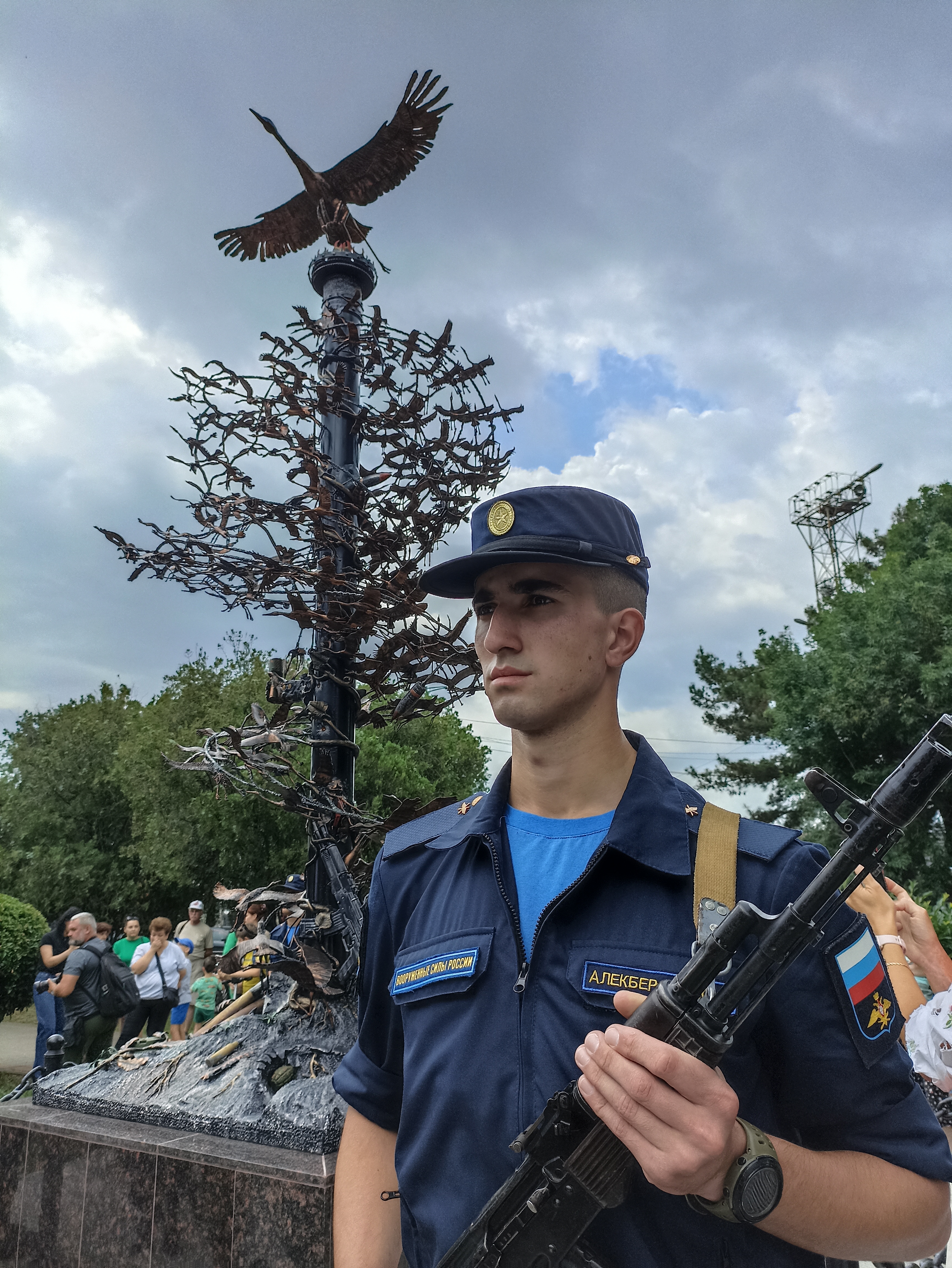 Море людей вокруг "Смерча журавлей"... Участники СВО, их жены, дети, жители и гости города, автор мемориала Денис Мильченко и кузнецы из других городов, глава города Туапсе Сергей Бондаренко, представители предприятий и организаций, молодежь пришли поклониться памяти павших героев специальной военной операции.