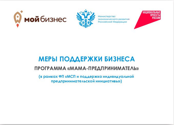 Узнать подробнее о проекте можно на сайте мамапредприниматель.рф. С другими мерами поддержки субъектов малого и среднего предпринимательства можно ознакомиться здесь - clck.ru/3GqDgH.