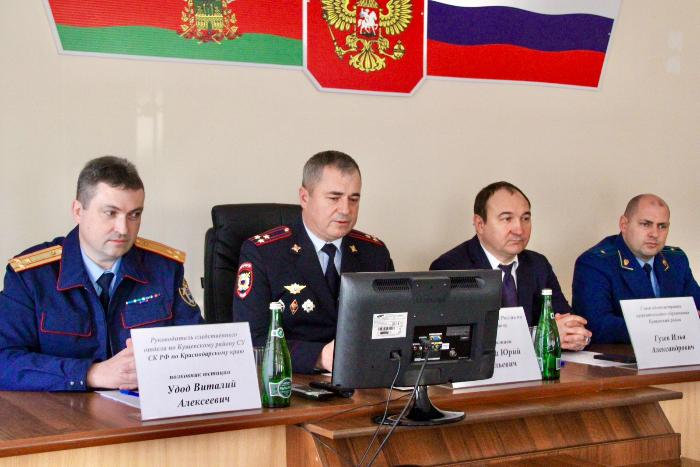 Глава Кущевского района Илья Гузев принял участие в совещании совместно с руководителем следственного отдела по Кущевскому району Виталием Удод и заместителем прокурора Кущевского района Романом Фоменко. В режиме видеоконференцсвязи в совещании принял участие заместитель начальника ГУ МВД России по Краснодарскому краю Сергей Лемешкин.
