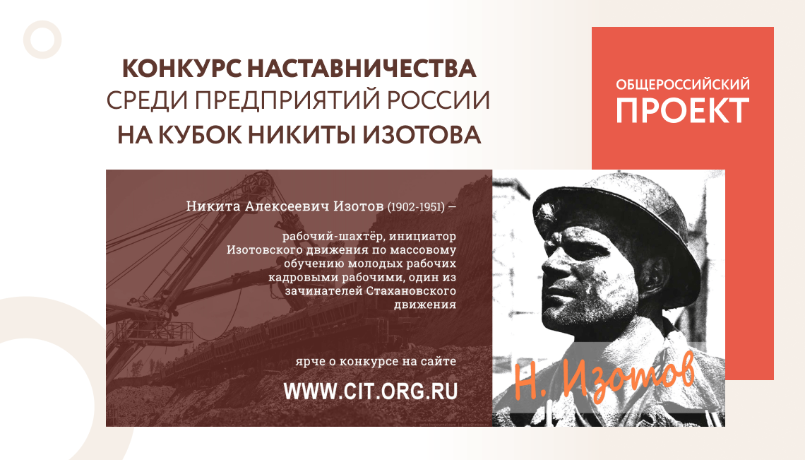 конкурс наставничества среди предприятий России на Кубок Никиты Изотова по следующим номинациям: «Лучшая система наставничества среди предприятия России – Большой кубок Никиты Изотова», «Лучший наставник - Малый Кубок Никиты Изотова», «Лучший пакет нормативных документов по наставничеству - Малый Кубок Никиты Изотова», «Лучшая команда наставников-напарников России - Кубок Центрального института труда»;