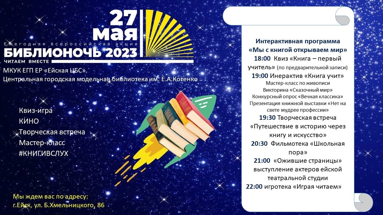 Приглашаем жителей и гостей города 27 мая 2023 года на Всероссийскую акцию "Библионочь-2023"