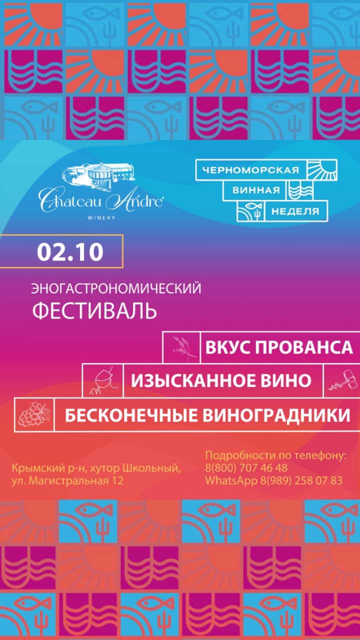 В рамках Черноморской винной недели на территории семейной винодельни Chateau André пройдет эногастрономический фестиваль. Это событие обещает стать настоящим праздником для всех ценителей вина и вкусной еды.