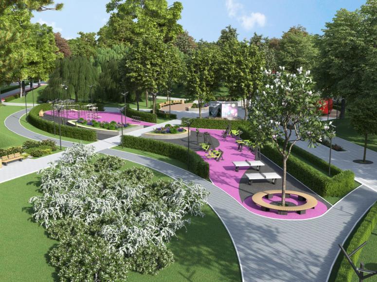 Здесь будет представлено несколько функциональных локаций: зона для проведения массовых мероприятий с парковой сценой, танцевальной площадкой и кинотеатром под открытым небом; площадки для детей разных возрастов; воркаут-зона с площадками для занятий спортом на уличных тренажерах; зона отдыха с площадкой для проведения йоги, теневыми качелями, лежаками, гамаками, скамейками, беседками; парк развлечений, включающий 6 площадок и 12 аттракционов; зона стрит-фуда с торговыми павильонами быстрого питания и местами размещения уличных столиков кафе-бистро; административная и хозяйственная зоны.