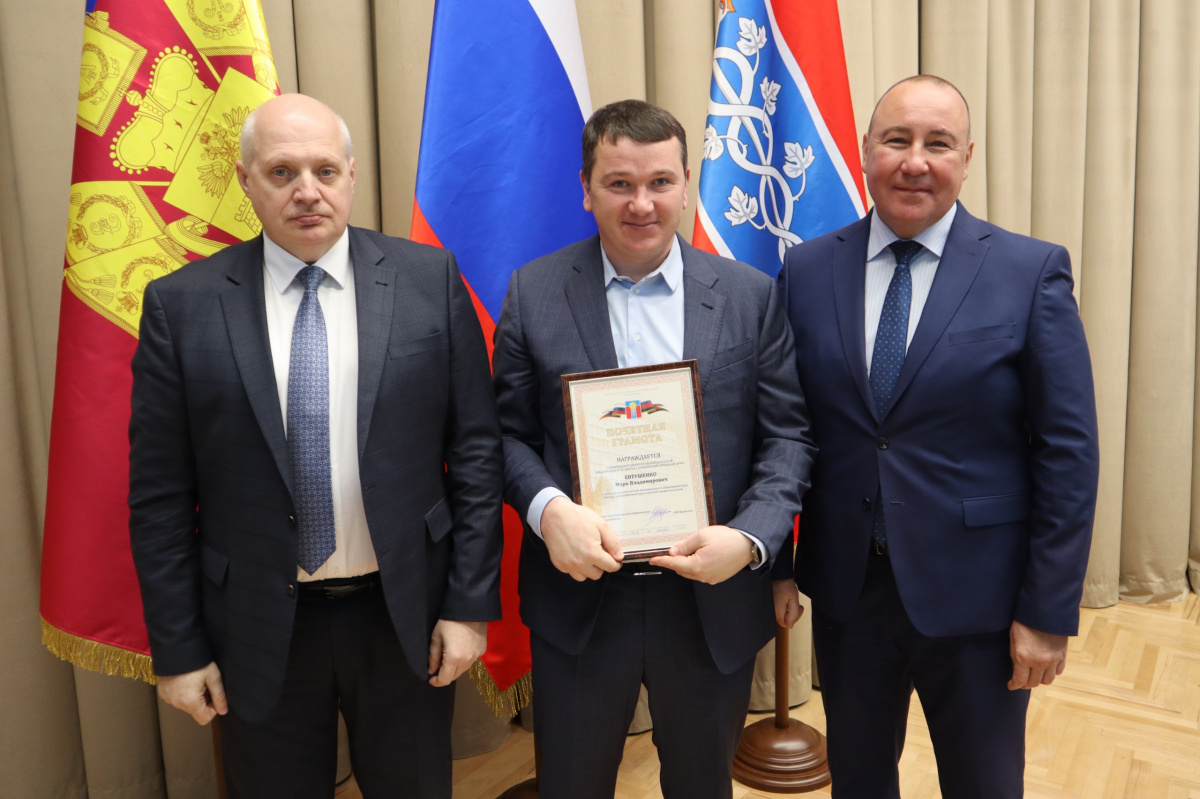 В завершении планерного совещания глава города Андрей Харченко наряду с другими награждаемыми вручил молодому депутату Армавирской городской Марку Евтушенко благодарность.
