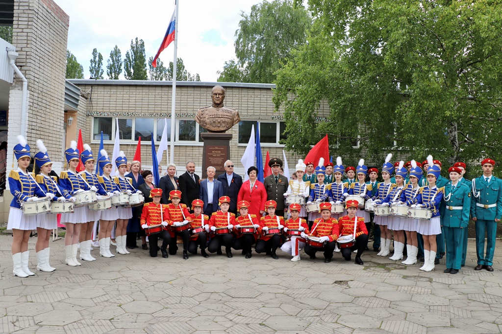 Памятник четырежды Герою Советского Союза Георгию Константиновичу Жукову установили на территории городской гимназии № 8 не случайно. Вот уже на протяжении четырех лет образовательное учреждение носит имя маршала Победы. В церемонии открытия памятного монумента приняли участие депутат Государственной Думы Российской Федерации Алексей Петрович Езубов, благодаря которому удалось установить бюст, автор проекта «Аллея Российской Славы» Михаил Леонидович Сердюков, глава города Евгений Голубь, заместитель руководителя муниципалитета Яна Гаврилова, председатель районного Совета ветеранов Вадим Власов, педагоги и учащиеся.