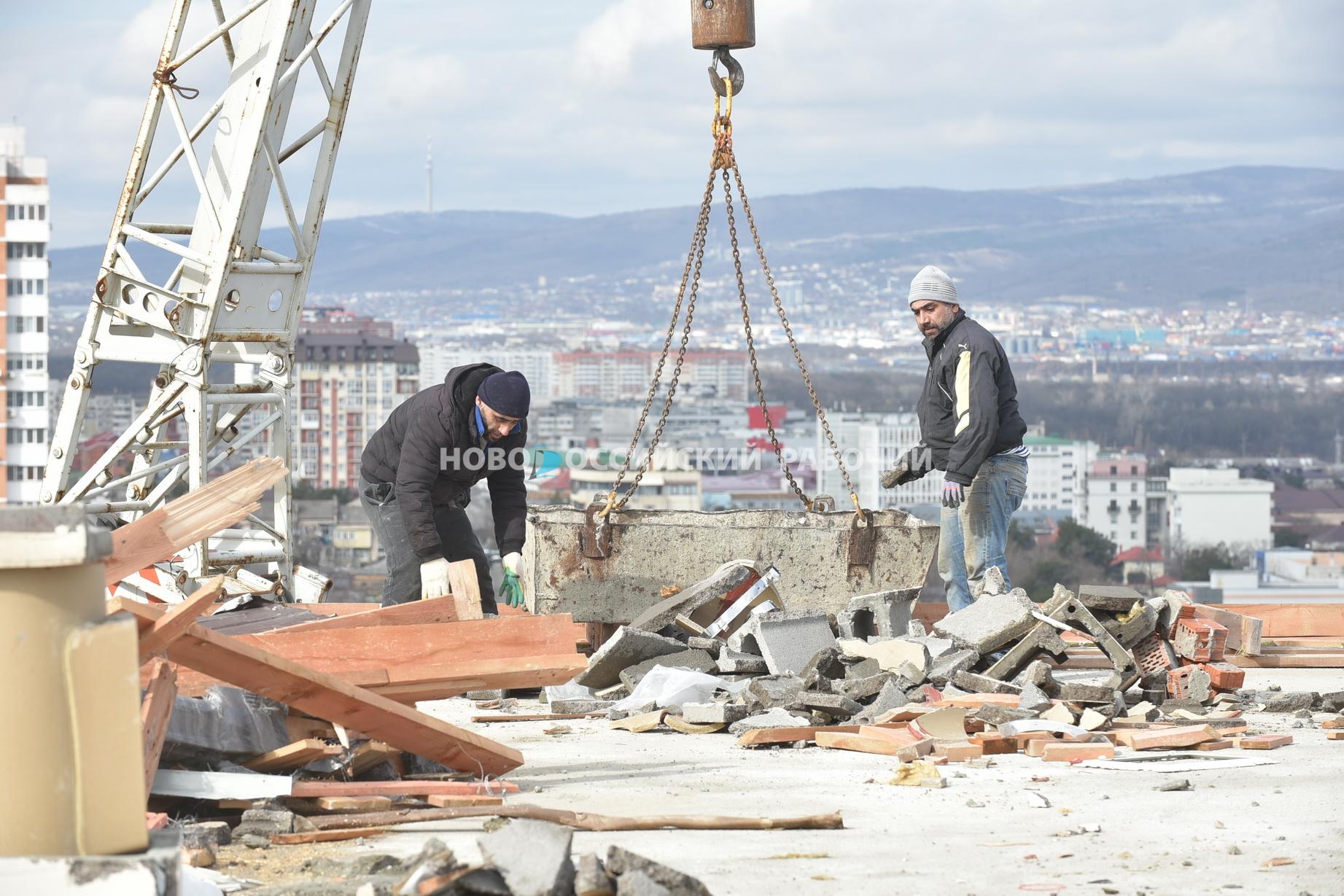 Фото Анатолия ПоздняковаСегодня, 22 февраля, на объекте идут активные восстановительные работы. Фрагменты разрушенной кровли подрядчики аккуратно снимают и вывозят. Работает кран, опасный участок огорожен. Такую картину застали корреспонденты «Новороссийского рабочего», побывав на ул. Лейтенанта Шмидта, 17.