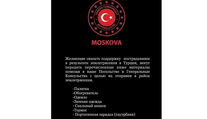 Вся собранная помощь будет передана нуждающимся жителям пострадавших регионов Турецкой Республики.