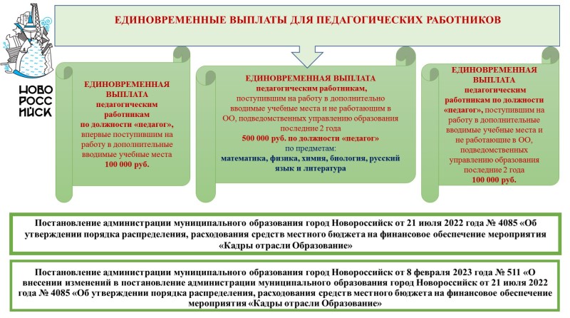 В НОВОРОССИЙСКЕ ПРЕДОСТАВЛЯЮТСЯ ЕДИНОВРЕМЕННЫЕ ВЫПЛАТЫ ДЛЯ ПЕДАГОГИЧЕСКИХ РАБОТНИКОВ