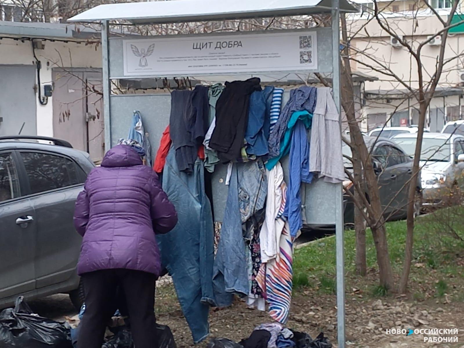 Фото Александры Бутченко.Многие новороссийцы с любопытством рассматривают «Щиты добра», которые установлены в нашем городе по десяти адресам. Идея с установкой этих щитов, куда горожане должны вешать использованные вещи для нуждающихся, принадлежит волонтёрам из НКО «Агенты доброты».