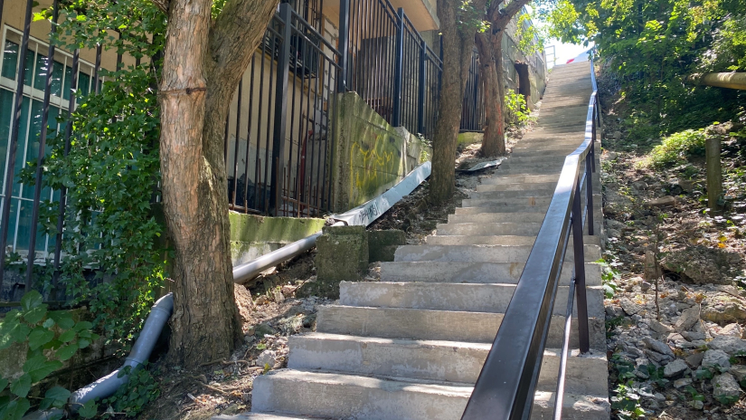 Ранее лестница общего пользования находилась в аварийном состоянии, перила вдоль лестницы шатались, ступеньки в некоторых местах были сколоты и крошились, а несколько пролетов разрушены до половины.