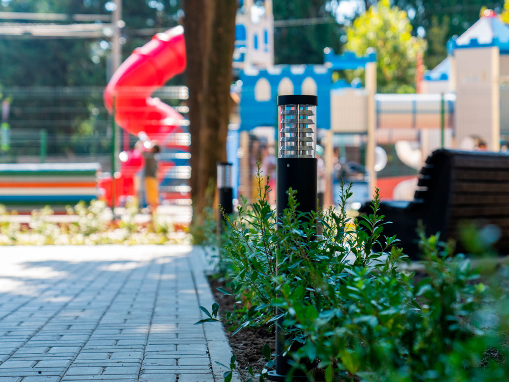 Здесь возвели детский игровой комплекс. Благоустроили прилегающую территорию – уложили более 500 квадратных метров тротуарной плитки, установили парковую мебель. Провели озеленение – высадили более 350 деревьев и кустарников, смонтировали декоративную подсветку.