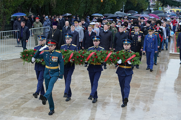 Глава Сочи Алексей Копайгородский принял участие в мероприятии у стелы «Подвиг во имя жизни» в Центральном районе. Цветы к мемориалу возложили также ветераны войн, военнослужащие, участники СВО, представители правоохранительных и силовых ведомств, депутаты Городского Собрания Сочи. Память погибших при исполнении воинского долга все собравшиеся почтили минутой молчания.