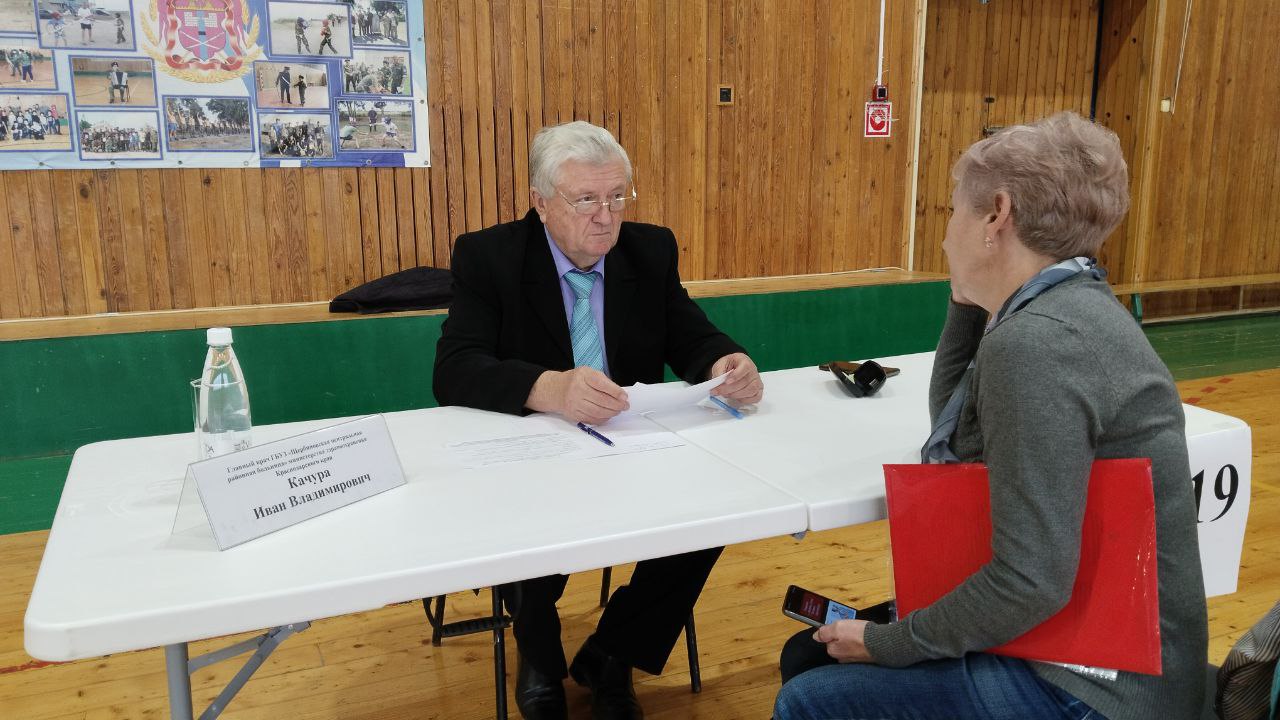 В спортивно - оздоровительном комплексе станицы Старощербиновской продолжается работа мобильной приемной Губернатора Краснодарского края.