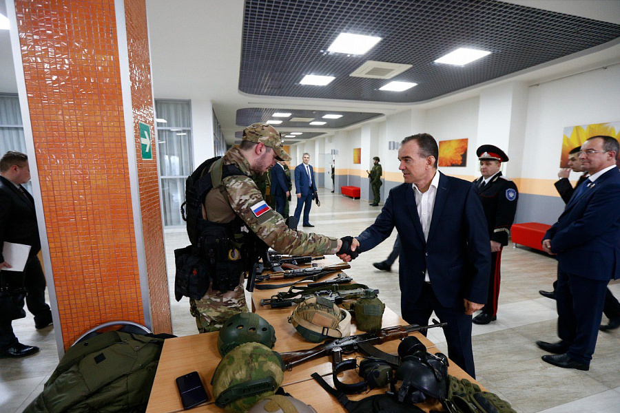 Сегодня свыше 2 тысяч участников Союза казачьей молодежи мужественно отстаивают государственные интересы в зоне СВО. Глава региона вручил одному из них – казаку-добровольцу Даниилу Дьяченко – Орден Мужества, присвоенный по указу Президента РФ за отвагу, проявленную при защите Отечества. Также Вениамин Кондратьев наградил почетной грамотой администрации края и благодарностью губернатора педагогов и обучающихся кадетских корпусов, школьников, проявивших себя в мероприятиях по помощи военнослужащим.
