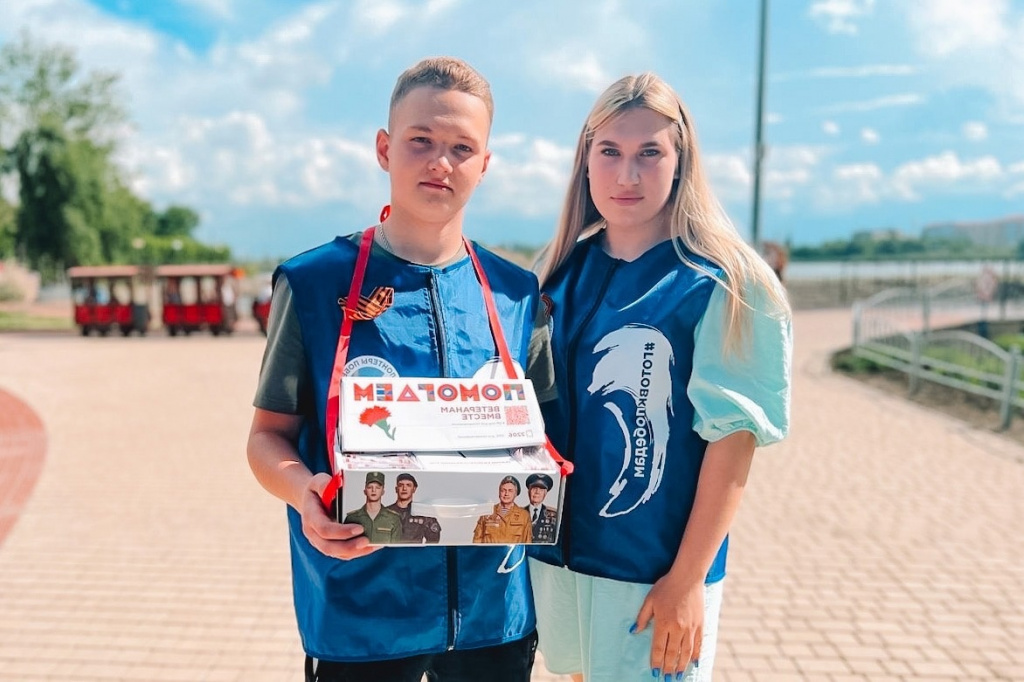 Волонтеры Динского района помогали всем желающим сделать пожертвование и получить в знак благодарности памятный значок.
