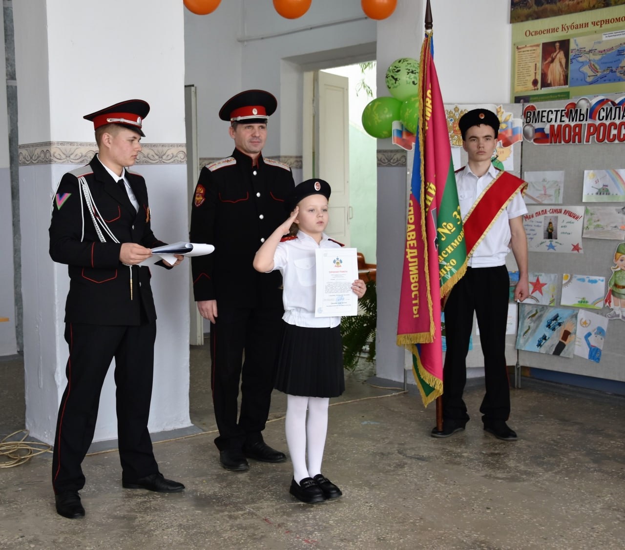 Ответным словом стало исполнение школьниками традиционной песни «Марш казачат», рассказала заместитель директора школы по воспитательной работе Дарья Огиенко.