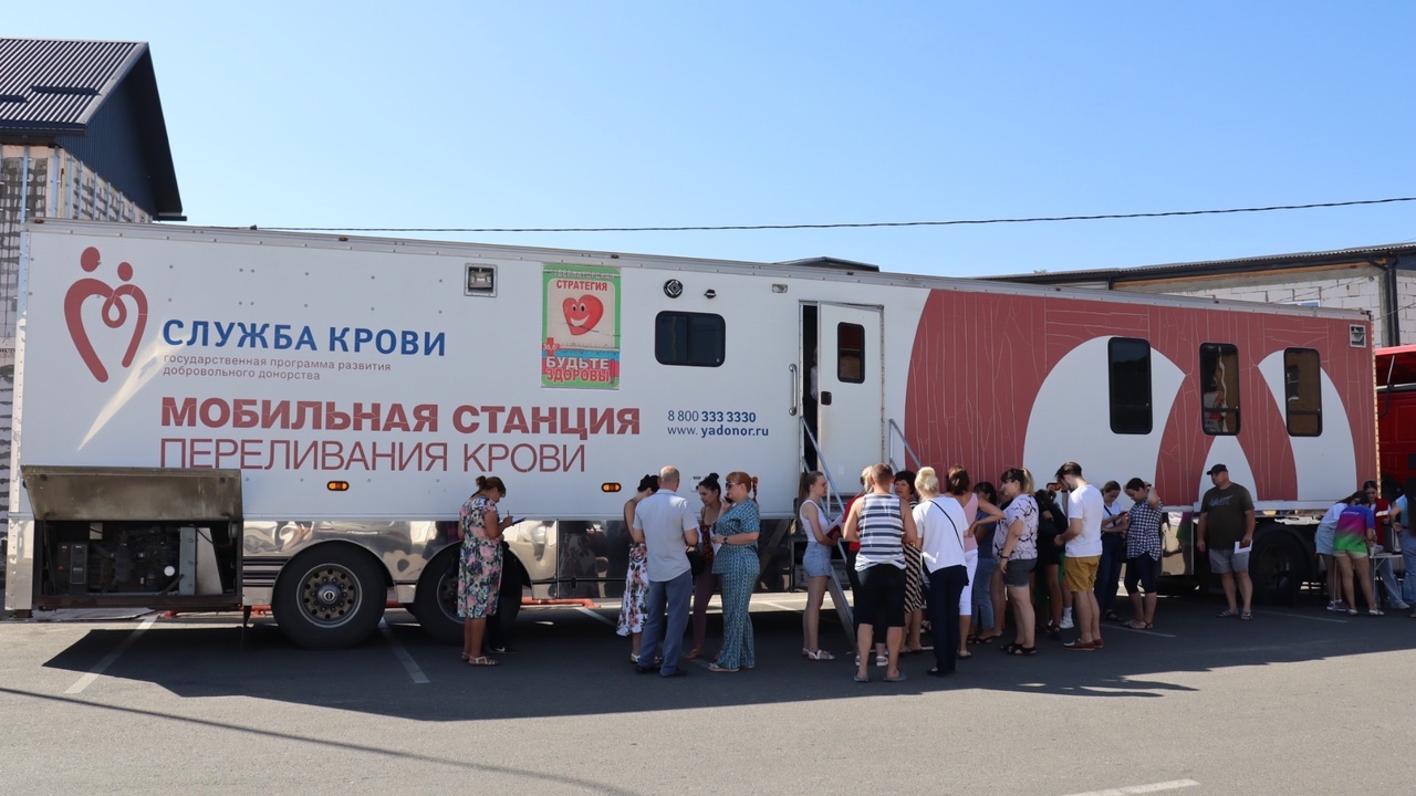 В На площади перед Семейным магнитом 17 августа с девяти утра работал мобильный комплекс краевой станции переливания крови.