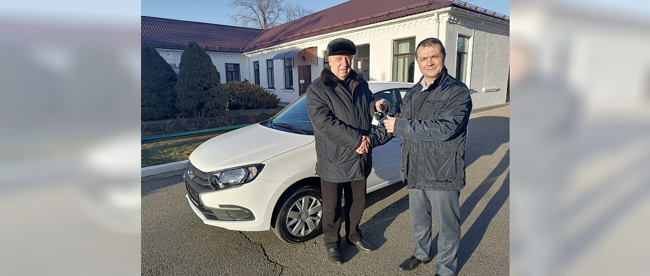 Армавир, 15 января. Автопарк онкологического диспансера Армавира пополнился новой машиной. Главный врач онкодиспансера Армавира Алексей Цыганков получил из рук генерального директора сельскохозяйственного предприятия «Хуторок» Федора Булдыжова ключи от новенькой «Лады Гарнты».