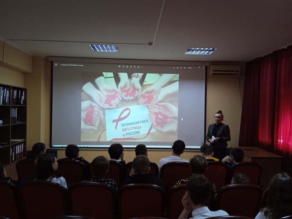 Урок нравственности «Коварный СПИД. Безмолвный крик» был проведён для учеников 8 класса школы № 2 ст. Выселки в СДК им. В.С. Стрижака. Об этом информирует учреждение культуры.