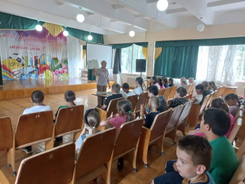 "Советы доктора Гантелькина" час интересных сообщений по здоровому образу жизни провела библиотека пос. Украинский в детском летнем лагере СОШ 26